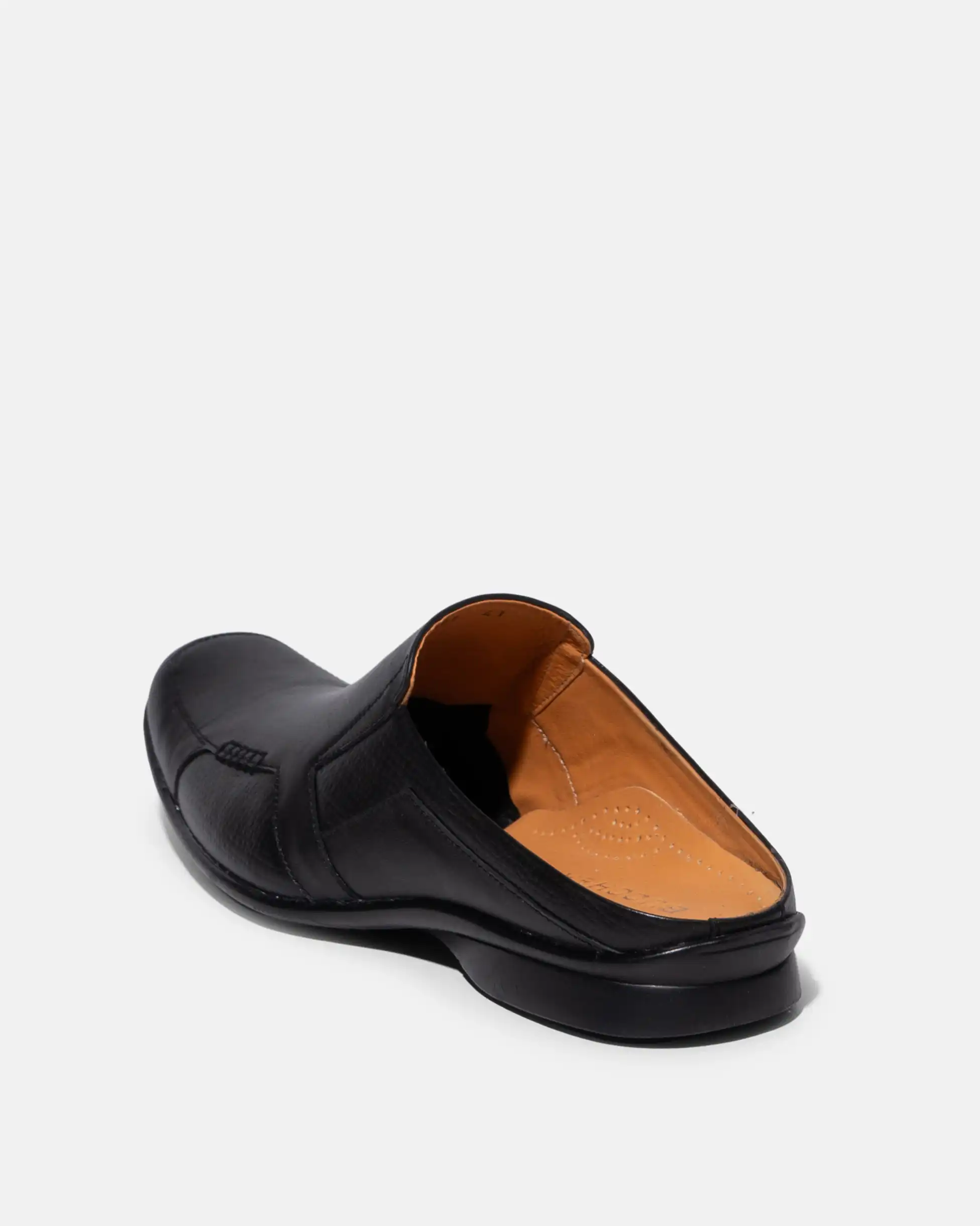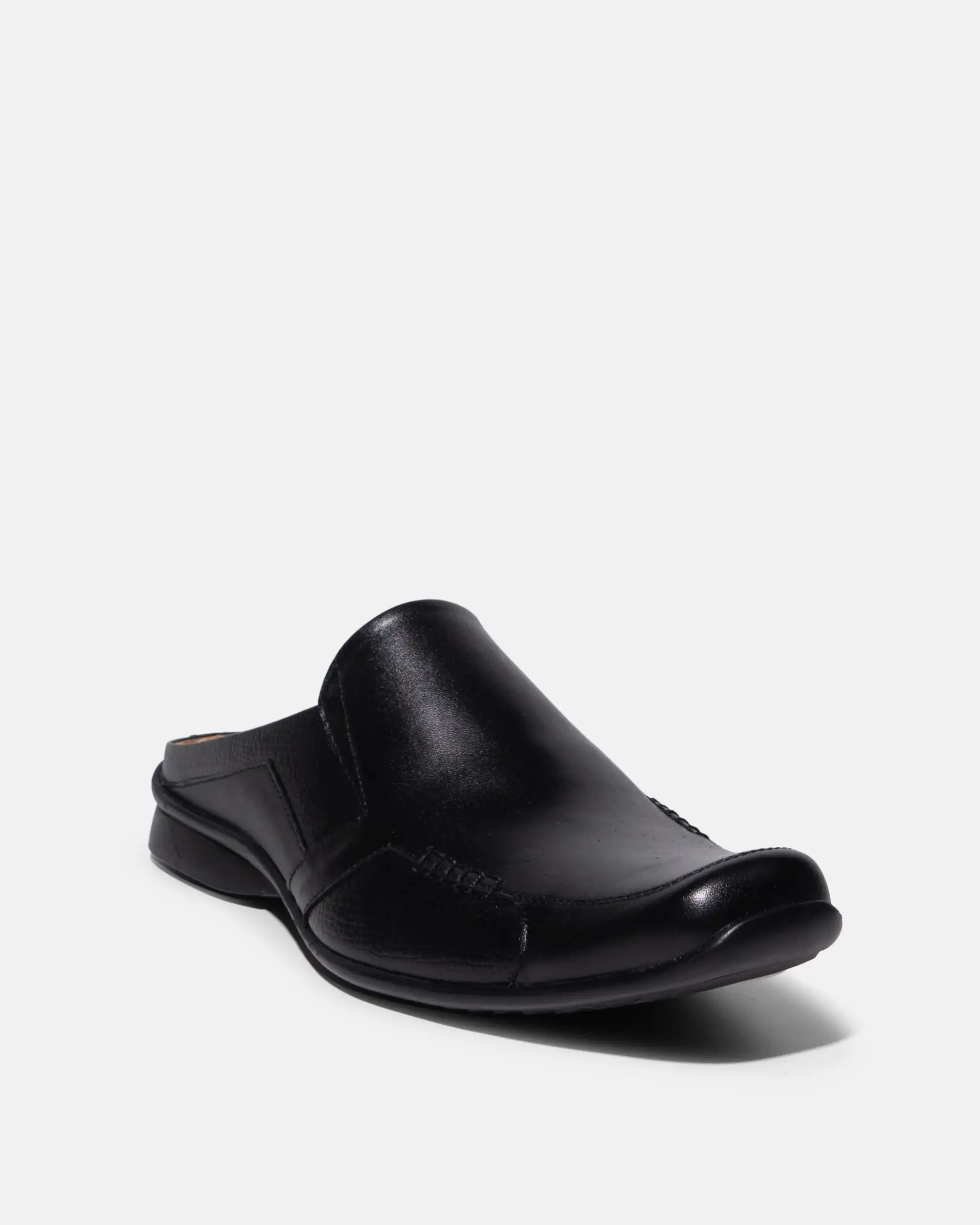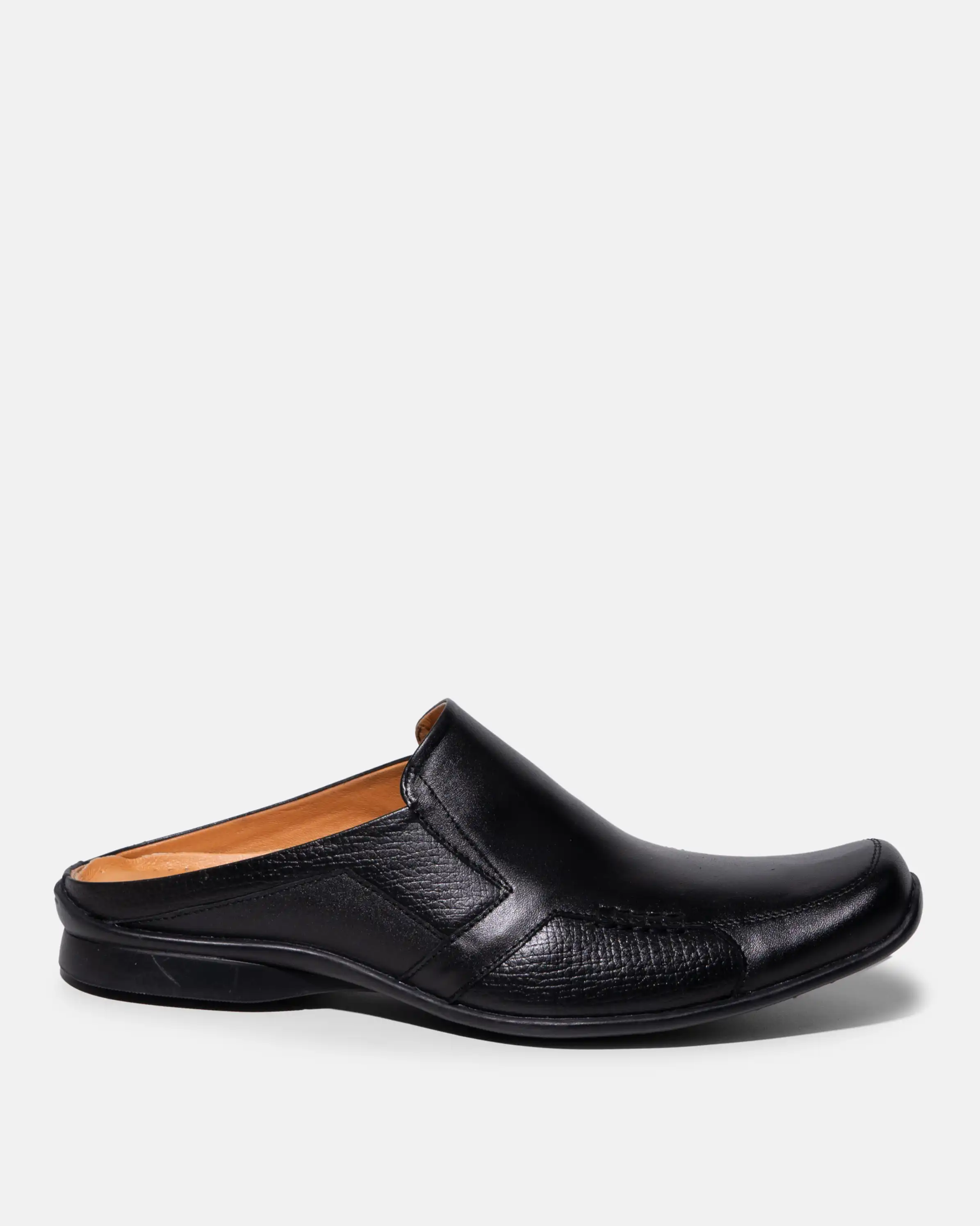 Sepatu mules Vito dibuat menggunakan kulit yang dipadukan dengan pattern leather serta aksen rajutan berbentuk kotak pada bagian samping.