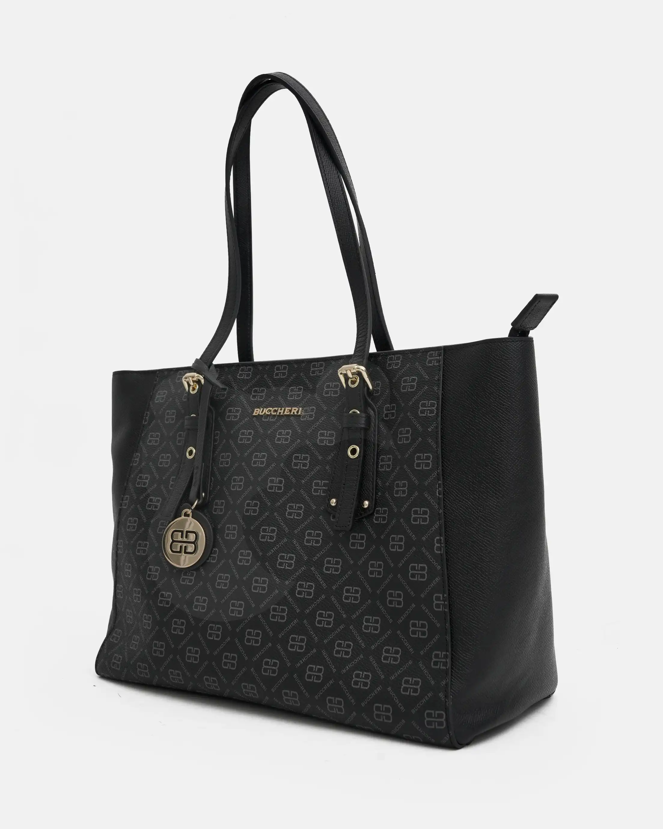 Vittoria bag in monogram coated canvas with leather inserts, branded metal pendant, designed timeless for a classy look.